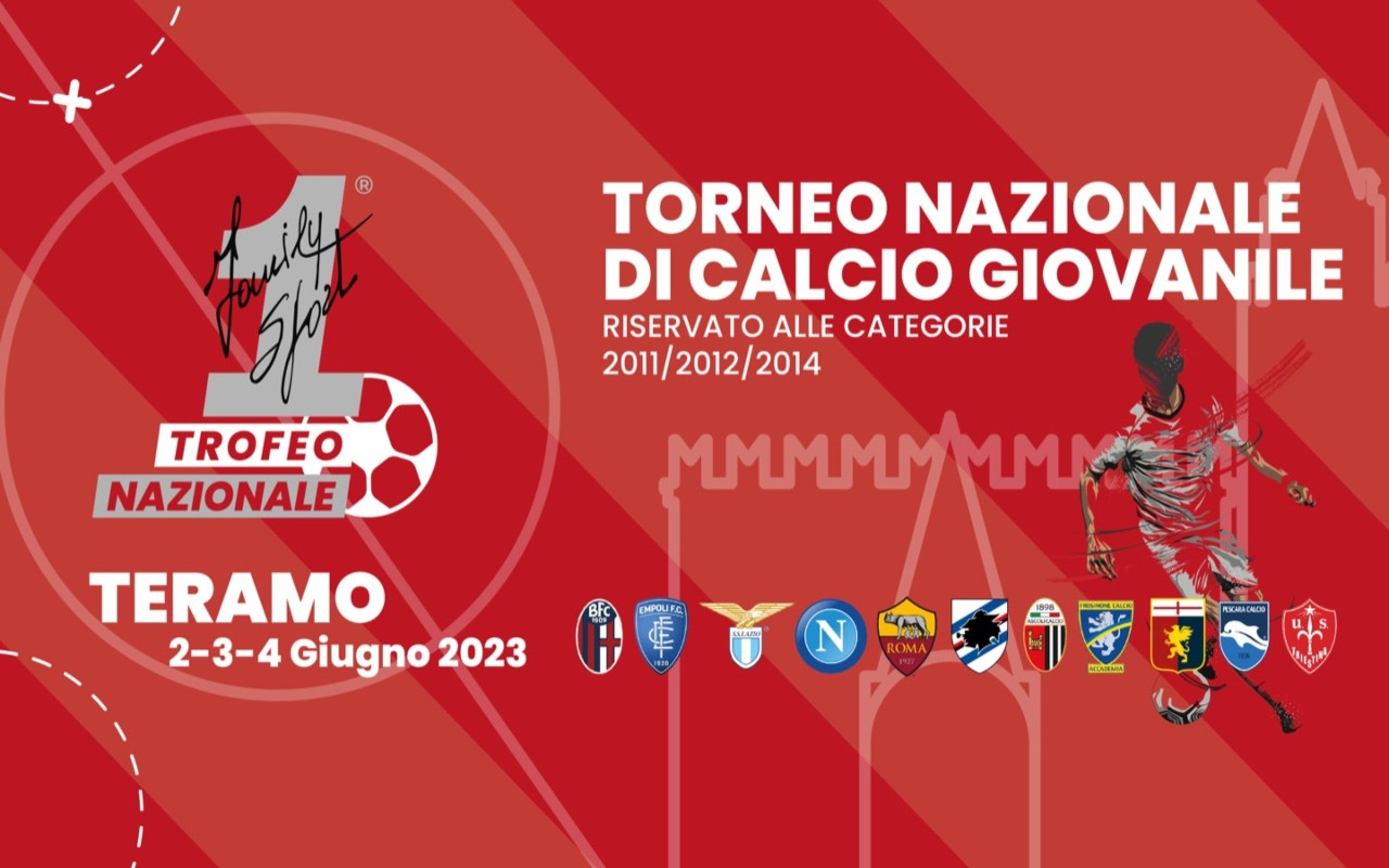 Dal 2 al 4 giugno prossimi, si terrà a Teramo il primo torneo giovanile “1Family Sport”. Alla competizione parteciperanno ben 60 squadre, tra cui 11 professionistiche (Lazio, Roma, Napoli, Bologna, Empoli, Genoa, Sampdoria, Frosinone, Ascoli, Delfino Pescara e Triestina Calcio).