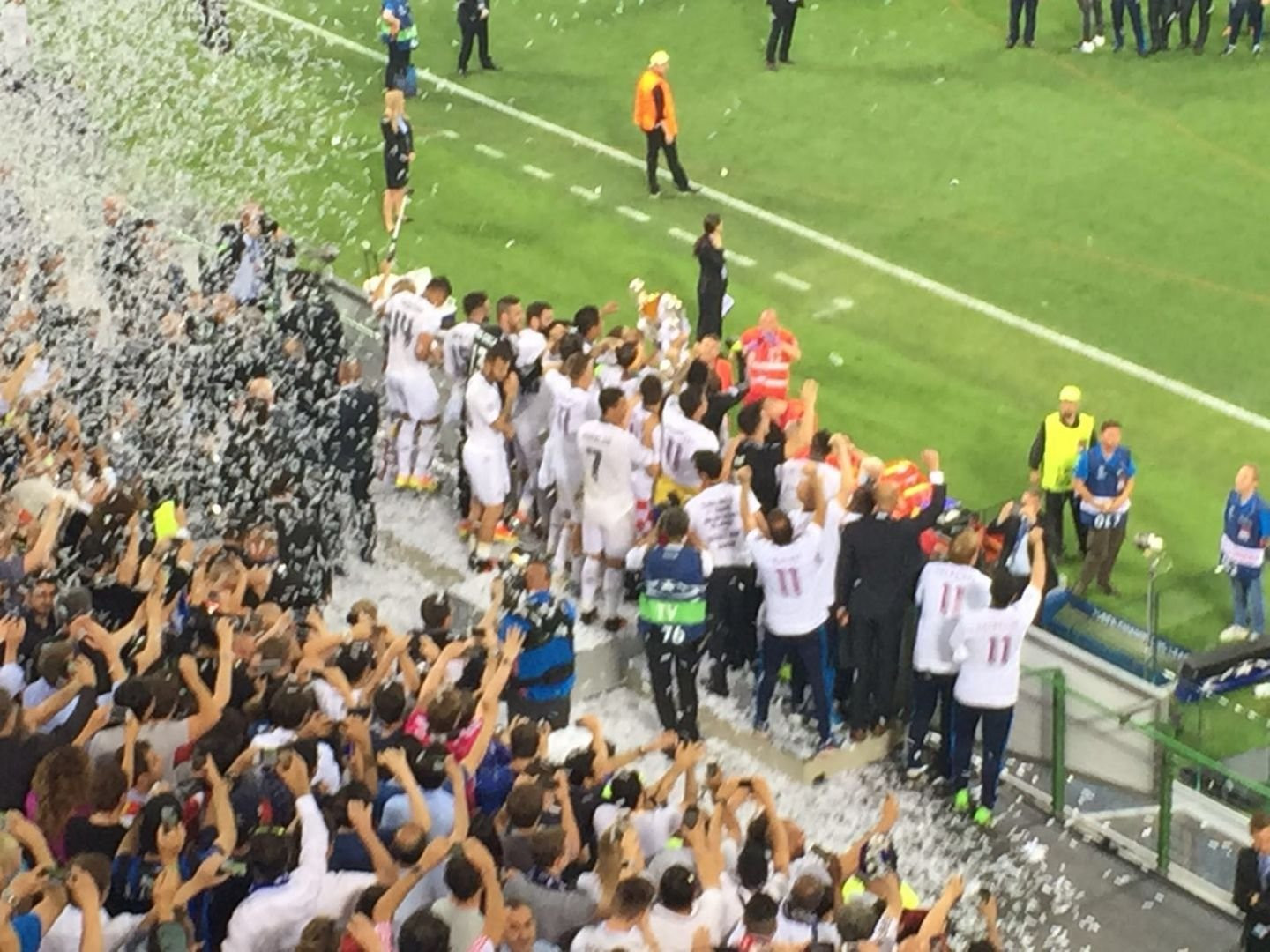 Applausi e cori per tutti; tanti per Zidane, che dopo cinque mesi da allenatore vince una Champions meritata e raddrizza una stagione che non era certo iniziata bene. Nemmeno un coro contro la squadra avversaria, durante tutti i 120 minuti. Appalusi anche per loro, un’altra volta avversari coraggiosi di una finale indimenticabile. E poi, mentre la squadra raggiunge la Cibeles, per i tifosi la notte continua nel centro di Milano, capitale della Spagna (per un weekend) che ha regalato al Madrid la Undécima.