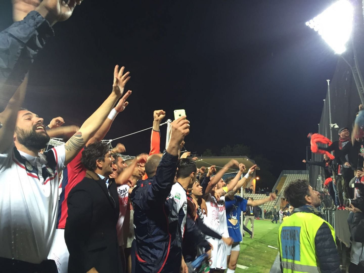 “A mano a mano” toccando il cielo. Della Serie A. Il Crotone apre gli occhi e tende l’orecchio, sente i 1100 tifosi cantare a squarciagola: “Tanto già lo so che l’anno prossimo giochiamo… all’Olimpico“. Per la prima volta nella sua storia nell’olimpo delle grandi. Serie A sul serio? Così Juric e squadra decidono di chiuderli e riaprirli ancora. Sbattere le ciglia. No, non è un sogno. È reAltà. Il pareggio contro il Modena può bastare per iniziare a festeggiare la storica promozione. Ecco tutte le immagini dal Braglia di Modena: