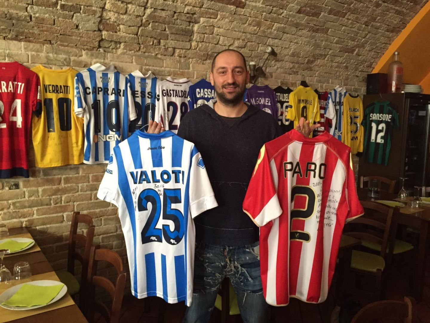 A tavola si diventa subito amici. Ancora più facile se, come nel caso di Leo Sfamurri, sei anche un ragazzo simpatico e super tifoso del Pescara. “Il chiodo fisso” è diventato il riferimento per la cena di tutti i ragazzi del Pescara che negli anni anno consolidato con Leo un rapporto che va molto oltre l’amicizia. “Ho iniziato conoscendone un paio, poi piano piano il giro si è allargato”, e con alcuni il rapporto è proseguito anche dopo l’esperienza pescarese. “Con Verratti e Immobile praticamente mi sento ogni giorno, come se fossero due di famiglia”. E non c’è da meravigliarsi se il suo locale sia una sorta di museo con maglie di tutta Italia e non solo. “Quella lì – dice indicando una maglia gialla appesa alla parete – me l’ha data Ciro dopo il suo gol con il Borussia Dortmund in Champions contro il Galatasaray”.