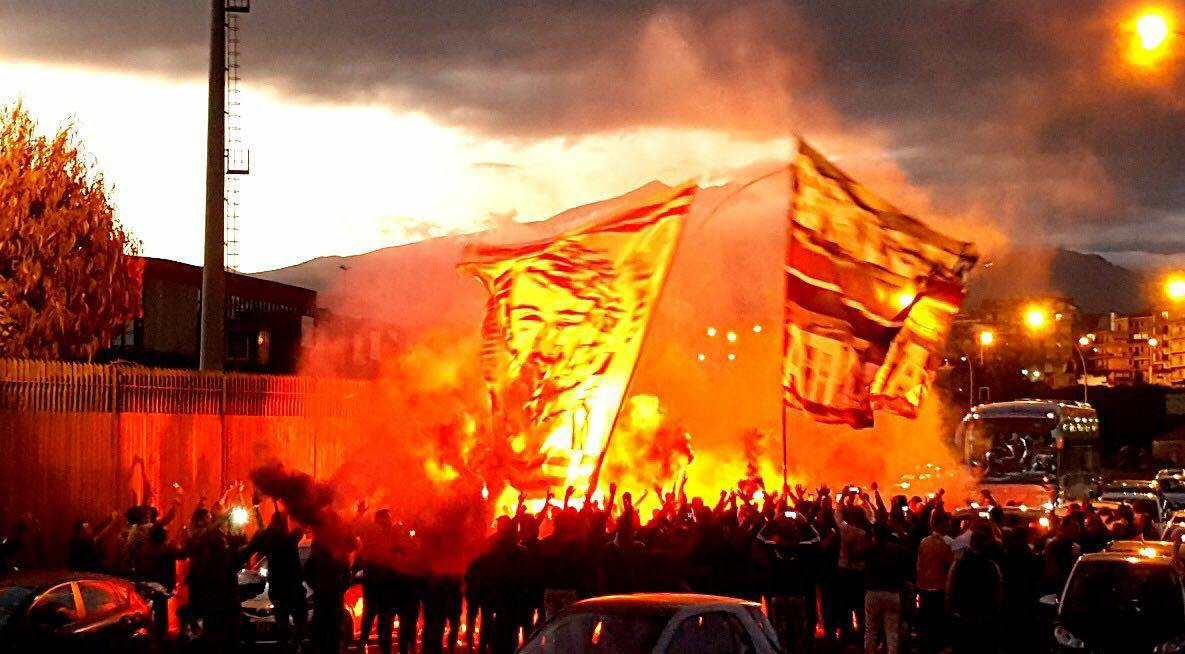 festa, con tanto di bandiere al seguito. Il motivo? Il derby vinto con il Messina, allo scadere, grazie alla rete