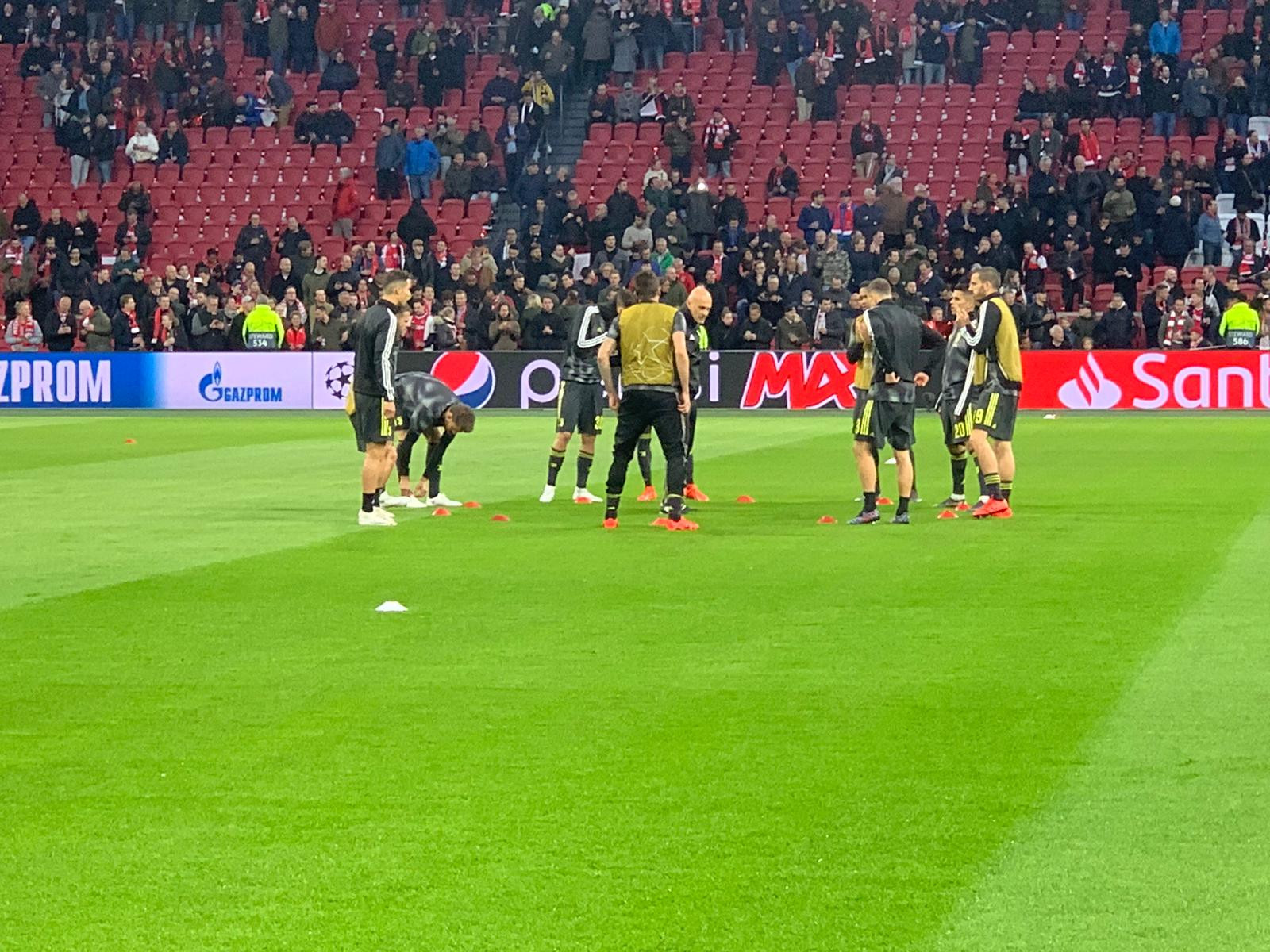 Tutto pronto alla Johan Cruijff Arena. La Juventus è già in campo e sta effettuando il riscaldamento.