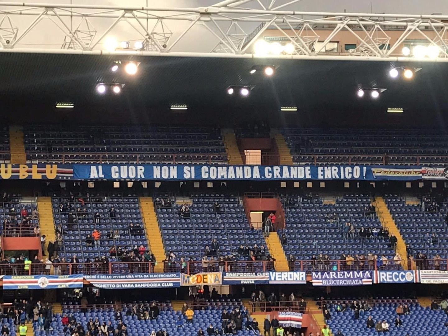 Quest’oggi, in occasione di Sampdoria-Pescara, i tifosi presenti al ‘Ferraris’ hanno voluto omaggiare con uno striscione Nicolini – presente tra l’altro in tribuna -. “Al cuor non si comanda. Grande Enrico!“, si legge sugli spalti. Un bel gesto, segnale di un legame profondo: quello tra Enrico Nicolini e la ‘sua’ Sampdoria.