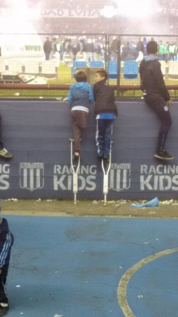In tribuna c’era anche Santy, come sempre alle partite del Racing, pronto a sollevarsi con il suo piede su una stampella, appoggiato ad un cartellone pubblicitario, per poter meglio osservare le gesta del suo eroe in campo. Lì il gesto che ha reso ancor più bella la serata dei presenti. “Ero in piedi sulla stampella per guardare Milito e il mio amico saltava perché non riusciva a vedere al di là del cartellone, allora gli ho prestato una stampella e anche lui ha potuto sollevarsi per vedere meglio”. Decine di scatti per immortalare i due bimbi fianco a fianco, a pochi passi dal loro idolo, per carpirne i segreti e ripeterli nelle partitine fra amici, per tributargli il giusto saluto e respirare l’essenza di uno sport che continua a regalare storie affascinanti e di colore, proprio come quella di Santy.