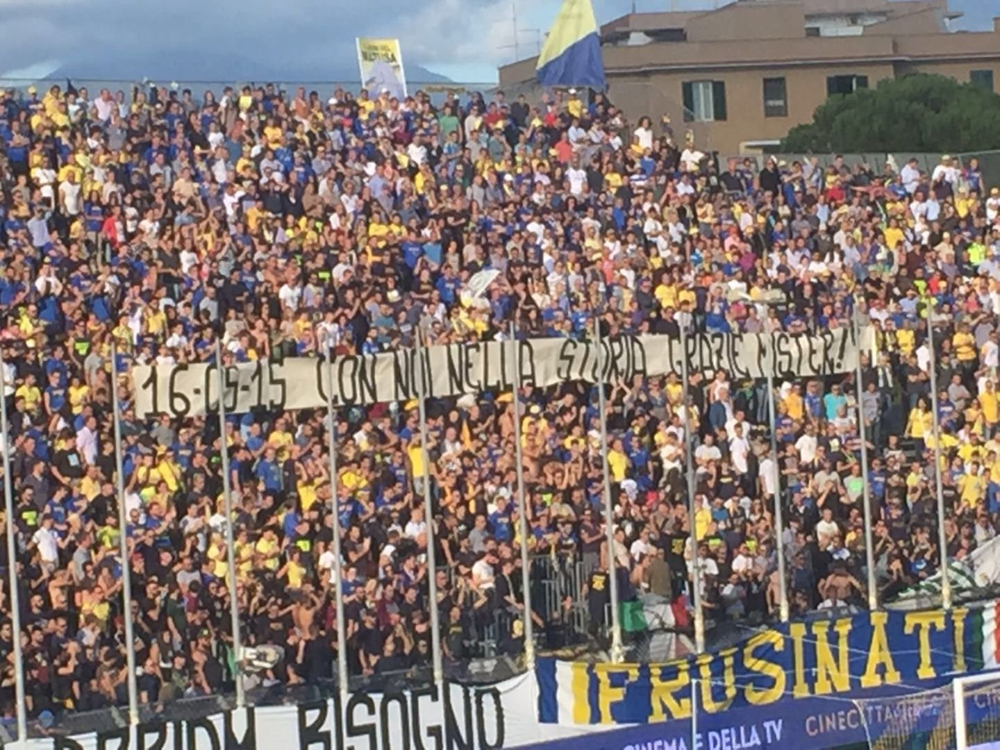 Poi, però, “nemici” come prima. E Stellone avrà letteralmente sgranato gli occhi di fronte ad un Frosinone così: bello, aggressivo e vincente. Altro che festa per l’ex allenatore, il Bari, dopo un inizio anche positivo, scompare dal campo e quello che per tre anni era stato il suo paradiso, per Stellone diventa un vero inferno. A metà secondo tempo (quando la doppietta di Dionisi ed il gol di Sammarco hanno già spianato la strada ai padroni di casa), dalla Curva del Frosinone spunta uno striscione diretto proprio a Stellone: “16-5-15 Con noi nella storia…grazie mister”. Un giusto riconoscimento per l’allenatore protagonista del doppio salto dalla Lega Pro alla serie A e che fino alla fine della scorsa stagione ha provato a difendere la categoria. Lui che a Frosinone ha sempre rappresentato molto più di un semplice allenatore: prodotto del settore giovanile grazie ai campionati da protagonista sulla panchina di Beretti e Primavera. Quelli che gli sono serviti a conquistare la promozione in prima squadra su espressa volontà del direttore generale Ernesto Salvini, l’uomo che più di tutti l’ha sostenuto, anche nei momenti più difficili.