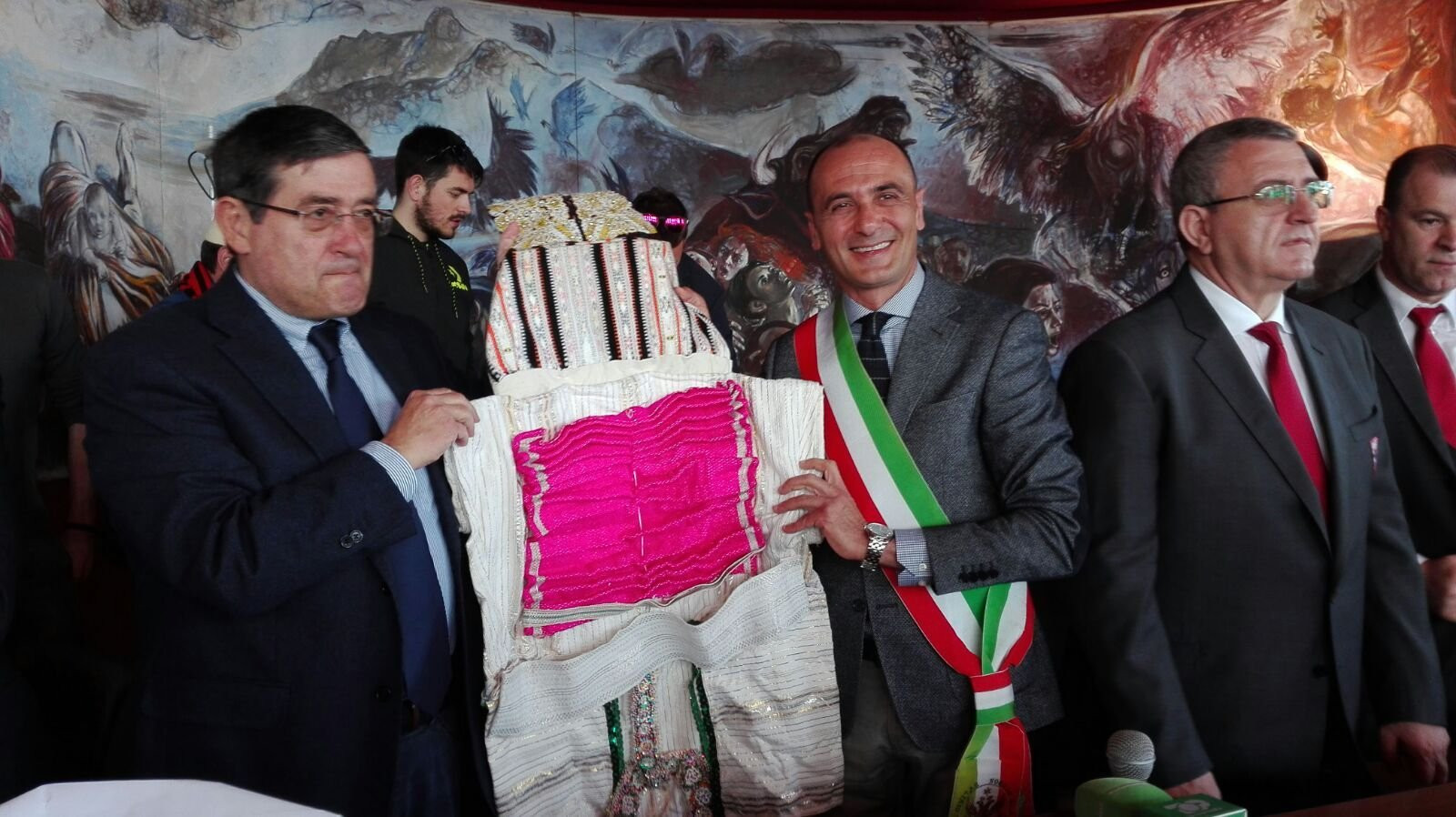 E’ il giorno di Italia-Albania, che si disputerà questa sera al Barbera, dove la Nazionale di Ventura e quella di De Biasi si giocheranno punti importanti verso il mondiale del 2018. Intanto una delegazione della Nazionale albanese si è recata in mattinata a Piana degli Albanesi, in provincia di Palermo, per salutare la comunità albanese del paese. L’incontro è avvenuto in municipio e a presenziarlo c’era Vito Scalia, il sindaco di Piana. Ecco tutte le foto