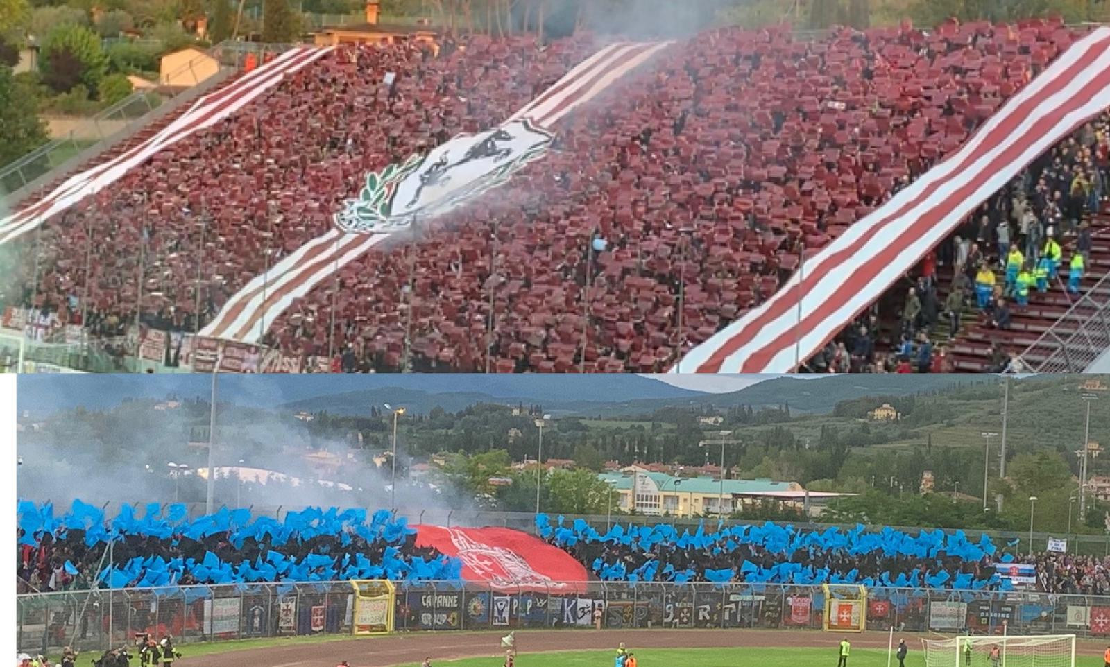 Andata dell’ultimo turno della fase nazionale, l’ultimo prima delle final four che portano in Serie B: Arezzo-Pisa è uno dei tre derby sorteggiati e il contorno dello Stadio Comunale Città di Arezzo racconta meglio di qualsiasi cosa l’importanza della partita.