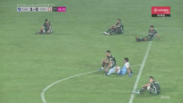 Il centro della polemica è stato l'arbitraggio di Adrian Franklin, ritenuto scandaloso dai giocatori del San Jorge che, sotto di un gol, hanno deciso di mettere in scena una protesta sui generis. Al quarto minuto del secondo tempo si sono tutti quanti seduti per terra sul terreno di gioco, impedendo alla gara di continuare. Il motivo era stato il totale di due espulsi e cinque ammoniti nella prima metà di gara, fatti ritenuti scandalosi dalla società tucumana: una di queste espulsioni era dovuta alle eccessive proteste in seguito al gol dell'Alvarado, ritenuto in fuorigioco dai giocatori del San Jorge che hanno scatenato una protesta così accesa da far intervenire addirittura la polizia dentro al campo.