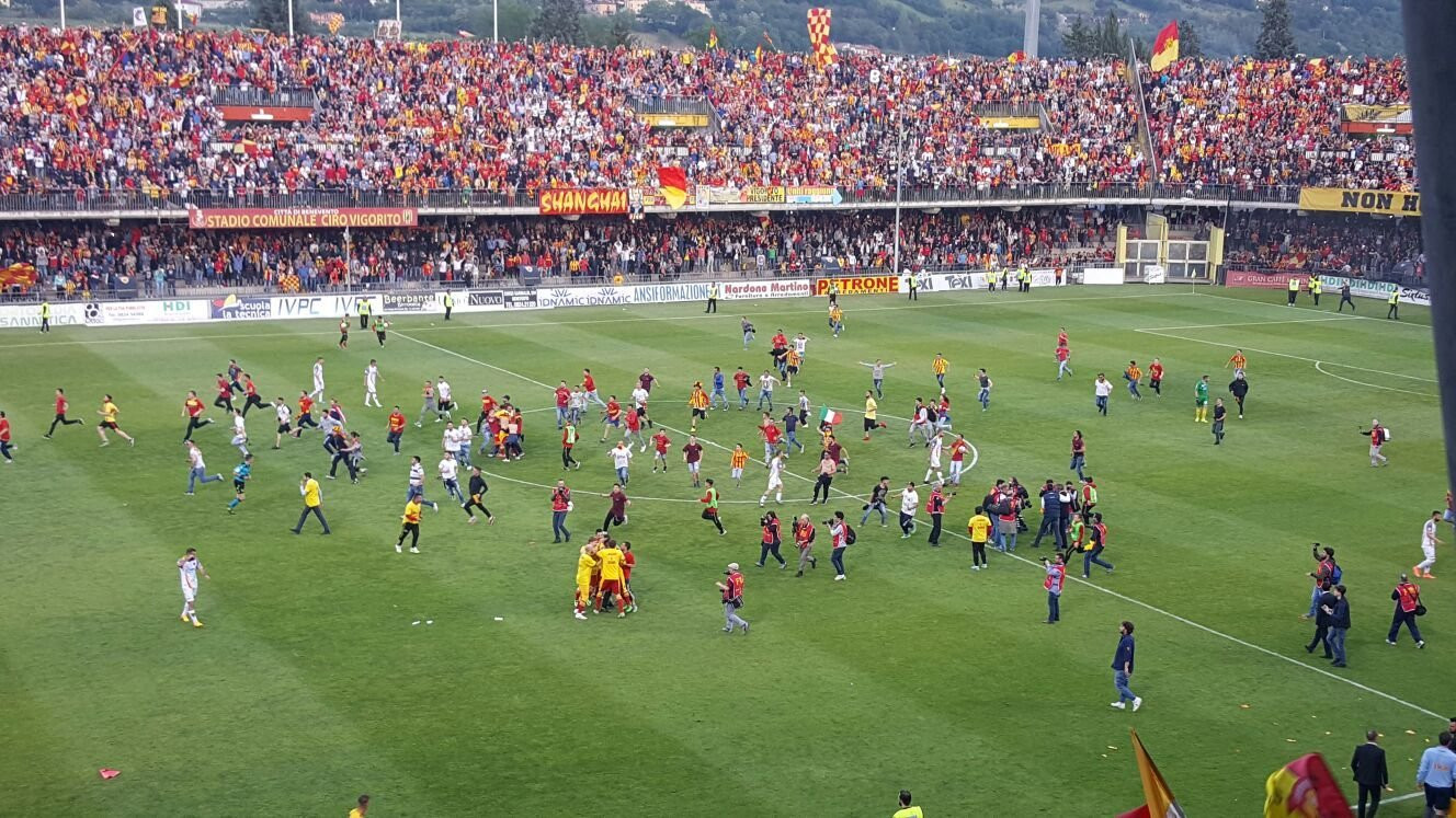 Colpo d’occhio straordinario, ma l’inizio è col brivido: il palo di Lepore fa trattenere il respiro ai tifosi di casa, ma di lì in poi è monologo Benevento. Mazzeo e Cissé portano in pochi minuti il match sul 2-0. I loro gol, le prodezze di Gori, le geometrie di De Falco. Tutto gira nel verso giusto, dal primo all’ultimo minuto. Nel secondo tempo arriva anche il terzo gol, ancora a firma di Mazzeo, e parte il conto alla rovescia. Sorrisi, abbracci e lacrime di gioia. Al triplice fischio esplode il Vigorito e le certezze spazzano via la scaramanzia: “Che tanto già lo so che l’anno prossimo gioco di sabato”.