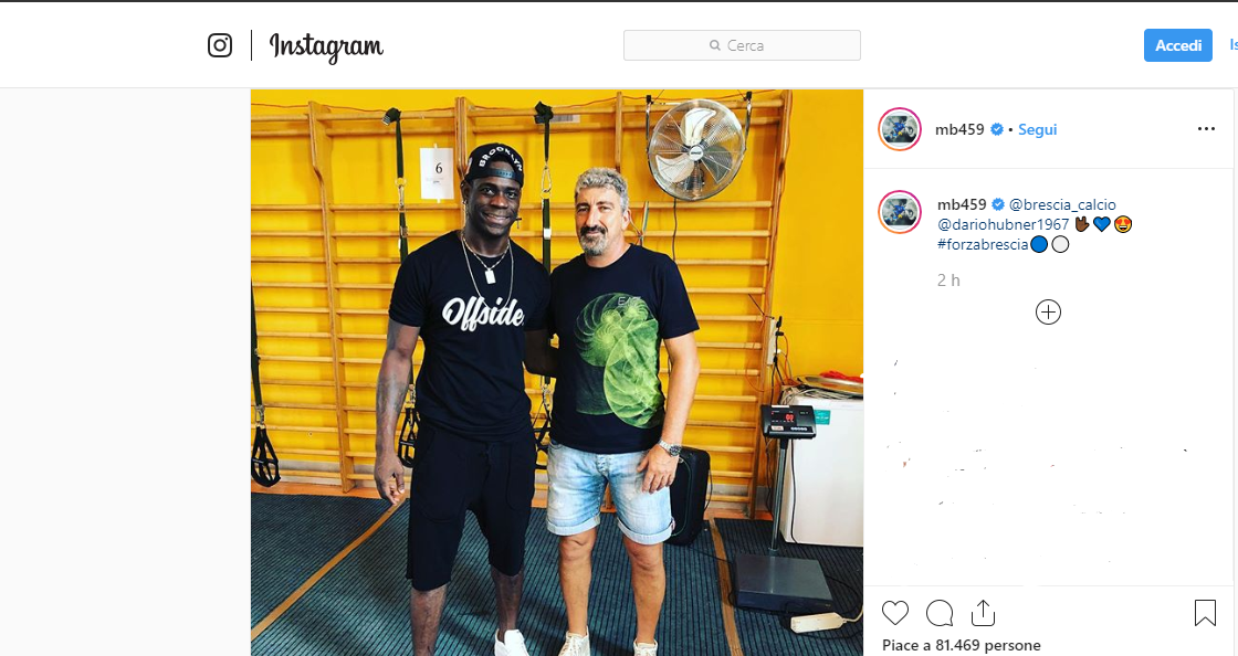 Nessuna descrizione, in fondo l’immagine rende perfettamente il concetto, semplicemente l’hashtag #ForzaBrescia e il tag all’ex attaccante, che poi ha prontamente commentato: “Grande Mario”. Un simpatico siparietto, concluso con la risposta del numero 45: “Grande tu Darione”.