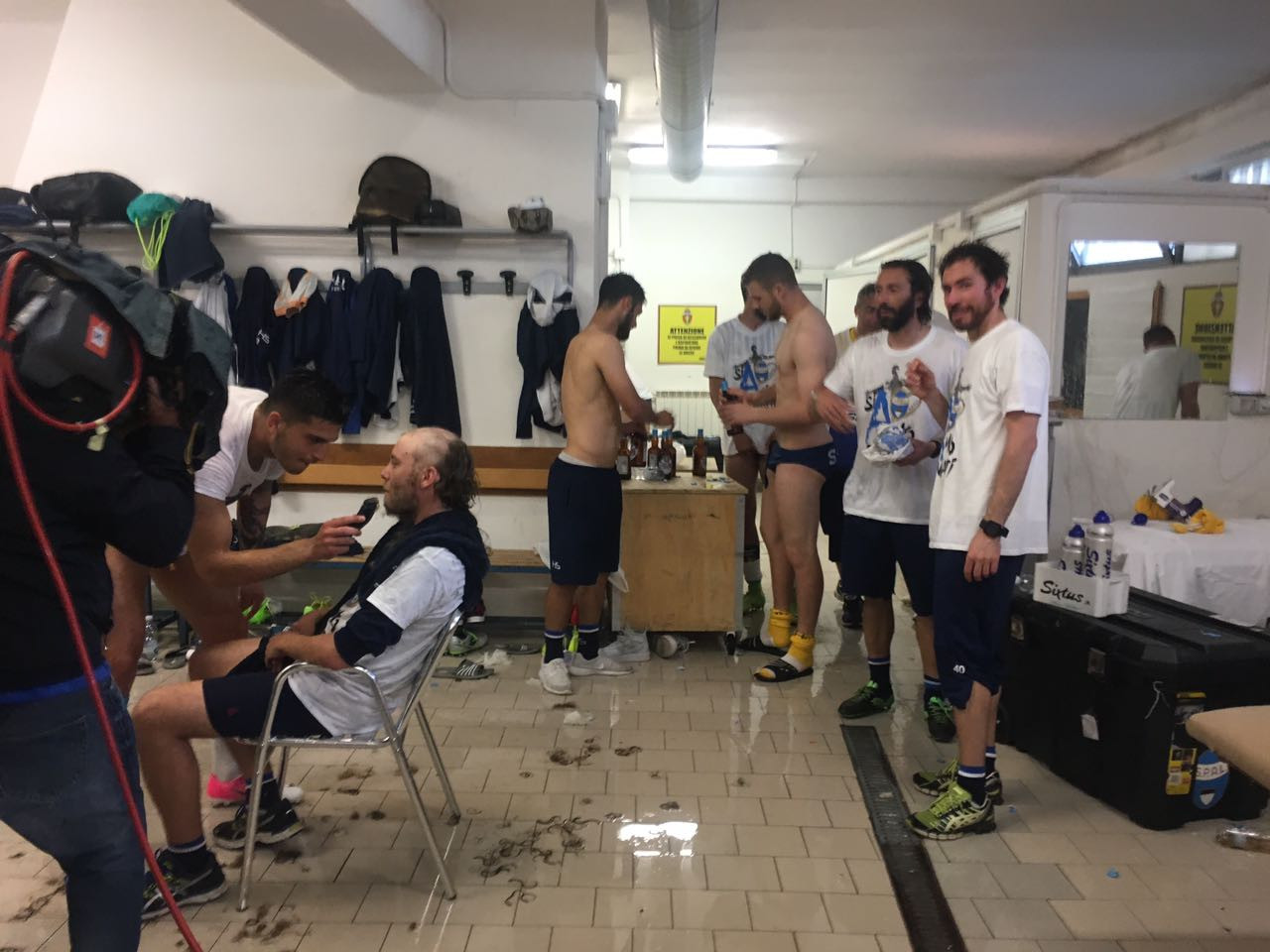 Una favola realizzata, un sogno che si avvera. La Spal torna in Serie A 49 anni dopo l’ultima volta. E come spesso capita ad una vittoria corrisponde una scommessa ed un pegno da pagare. Forse prendendo spunto da quanto fatto da Oddo e Camoranesi dopo la vittoria del Mondiale, il preparatore atletico della Spal Silvestri a fine gara si è fatto “tosare” dai giocatori. Sedia al centro dello spogliatoio, macchinetta in mano e via. Barba, capelli, tutto quello che c’era da tagliare non è sopravvissuto alla mano dei giocatori. Il risultato è di dubbio gusto, vista la mano poco professionale e il clima presumibilmente goliardico/alcolico. Ma per la Serie A questo ed altro no?