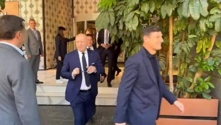 13:30 – La dirigenza dell’Inter sta uscendo dall’hotel per recarsi al consueto pranzo UEFA con il Barcellona. Tra questi, naturalmente c’è Giuseppe Marotta oltre ad alcuni esponenti di Oaktree