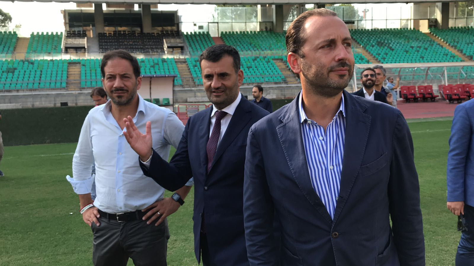 L’astronave realizzata da Renzo Piano per i Mondiali di Italia ’90 è oggetto di un ampio restyling, passato per spogliatoi, aree hospitality e manto erboso. Una conferenza stampa, seguita da un tour dello stadio in compagnia del sindaco e dell’assessore allo sport Pietro Petruzzelli, infine una passeggiata sul prato, che domenica ospiterà la prima partita interna in Serie D del Bari di Cornacchini, che attende la Sancataldese.
