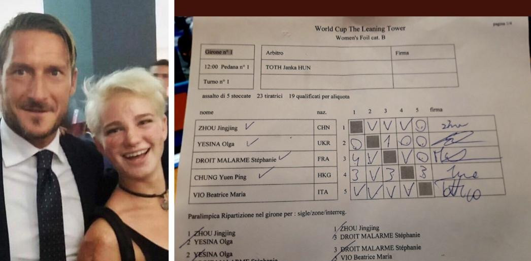 Alla fine di ogni gara, infatti, la giovane atleta si firma come ‘Totti10’: un rito nato per gioco e ormai diventato una sorta di scaramanzia: “Non so neanche quanto sia legale, perché è il foglio che dice tutti i punteggi che hai fatto e tu firmandolo li confermi – Ha rivelato Bebe Vio ai microfoni di Sky Sport – All’inizio scrivevo Bebe Vio, ma non andavo bene, poi ho detto “Vabbe, mi porta bene Totti e sono romanista, stavolta firmo Totti10. Da quando ho iniziato a fare così sono andata bene in tutte le gare. Totti lo sa? Non lo so. L’importante è che non inizino a farlo gli altri”.