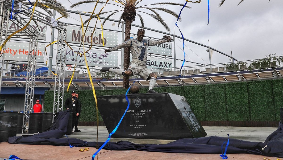 Dal 2007 al 2012, cinque anni per vincere e rivoluzionare il calcio americano. Tanto è bastato a Beckham, arrivato a Los Angeles nell’estate del 2007 direttamente dal Real Madrid. 98 presenze, 18 reti , 40 assist e 2 campionati vinti. Una storia di successi che è valsa all’inglese la statua che da ieri sera sarà sempre presente davanti lo stadio dei Los Angeles Galaxy. L’occasione per la presentazione è stata la gara inaugurale della squadra di Los Angeles, vinta per 2-1 contro i Chicago Fire.