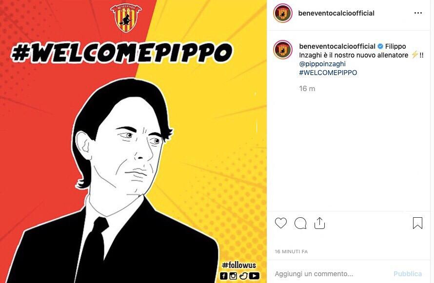 "Filippo Inzaghi è il nostro nuovo allenatore. #WELCOMEPIPPO", si legge sul profilo Instagram del Benevento.