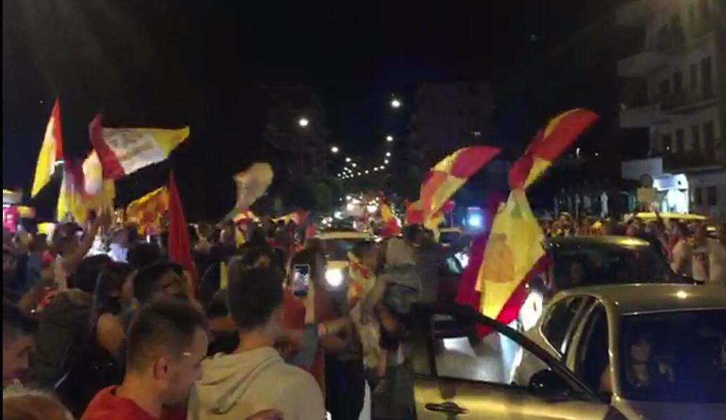 Una notte indimenticabile. Storica, come la promozione in Serie A della squadra di Baroni. Il Benevento non sta vivendo un sogno, è tutta realtà, come i 90 minuti del Vigorito di ieri sera che hanno consegnato alla neopromossa il pass per la Serie A, per la prima volta nella loro storia. Stadio tutto esaurito, tifosi entusiasti per questo traguardo impensabile a inizio stagione. E la festa è iniziata al triplice fischio, in campo e negli spogliatoi, ed ora prosegue per le vie della città: Benevento è tutta giallorossa e l’entusiasmo dei tifosi è alle stelle. Bandiere, cori, sciarpe al cielo e clacson: Benevento stanotte non dorme… festeggia.