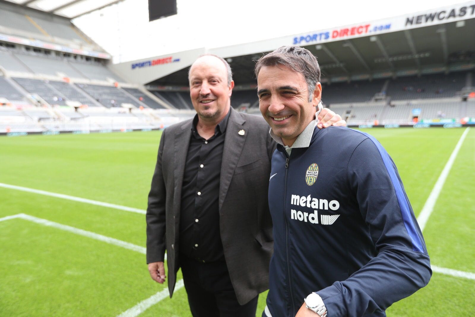 L’allievo contro il maestro, per la prima volta. E anche se, a differenza dei più classici film in cui nel finale è sempre l’allievo a trionfare, questa volta a vincere è stato il maestro, poco importa: l’emozione di incontrarsi da avversari per la prima volta difficilmente verrà dimenticata da entrambi. Stiamo parlando di Rafa Benitez e Fabio Pecchia, insieme dal 2013 fino a giugno 2016 rispettivamente come allenatore e vice allenatore prima del Napoli e poi del Newcastle. L’italiano divenne vice dello spagnolo ai tempi di Napoli su indicazione di Bigon consigliato dall’amico Fusco, oggi ds proprio del Verona e da sempre in buoni rapporti con Rafa. Benitez avrebbe voluto continuare a lavorare con Pecchia ma l’italiano decise che era giunto il momento di tentare questa nuova avventura al Verona, così i due si separarono nel giugno 2016 mantenendo però sempre un grande rapporto di stima e amicizia. E proprio oggi i due si sono affrontati in un match amichevole tra Newcastle ed Hellas Verona terminato 2-0 per gli inglesi: non di certo una gran prestazione della squadra di Pecchia, in cui prima Nicolas e poi Silvestri hanno limitato il passivo. Ma come dicevamo in precedenza, poco importa: è stata una bella occasione per rivedersi, chiacchierare, riabbracciarsi. Confrontarsi. Anche se non è stato l’allievo a sconfiggere il maestro, come da copione. Due amici più che due colleghi, avversari per la prima volta dopo tanti anni insieme. Ecco le foto.