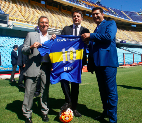 La politica che incontra il calcio, l’Argentina che abbraccia l‘Italia. Mattinata speciale oggi alla ‘Bombonera’, dove il Presidente del Consiglio Matteo Renzi ha incontrato i vertici del Boca Juniors, il presidente Daniel Angelici e il vice presidente Royco Ferrari. Tanti gli argomenti di cui si è discusso, dalla politica al legame tra Argentina e Italia, fino al calcio.