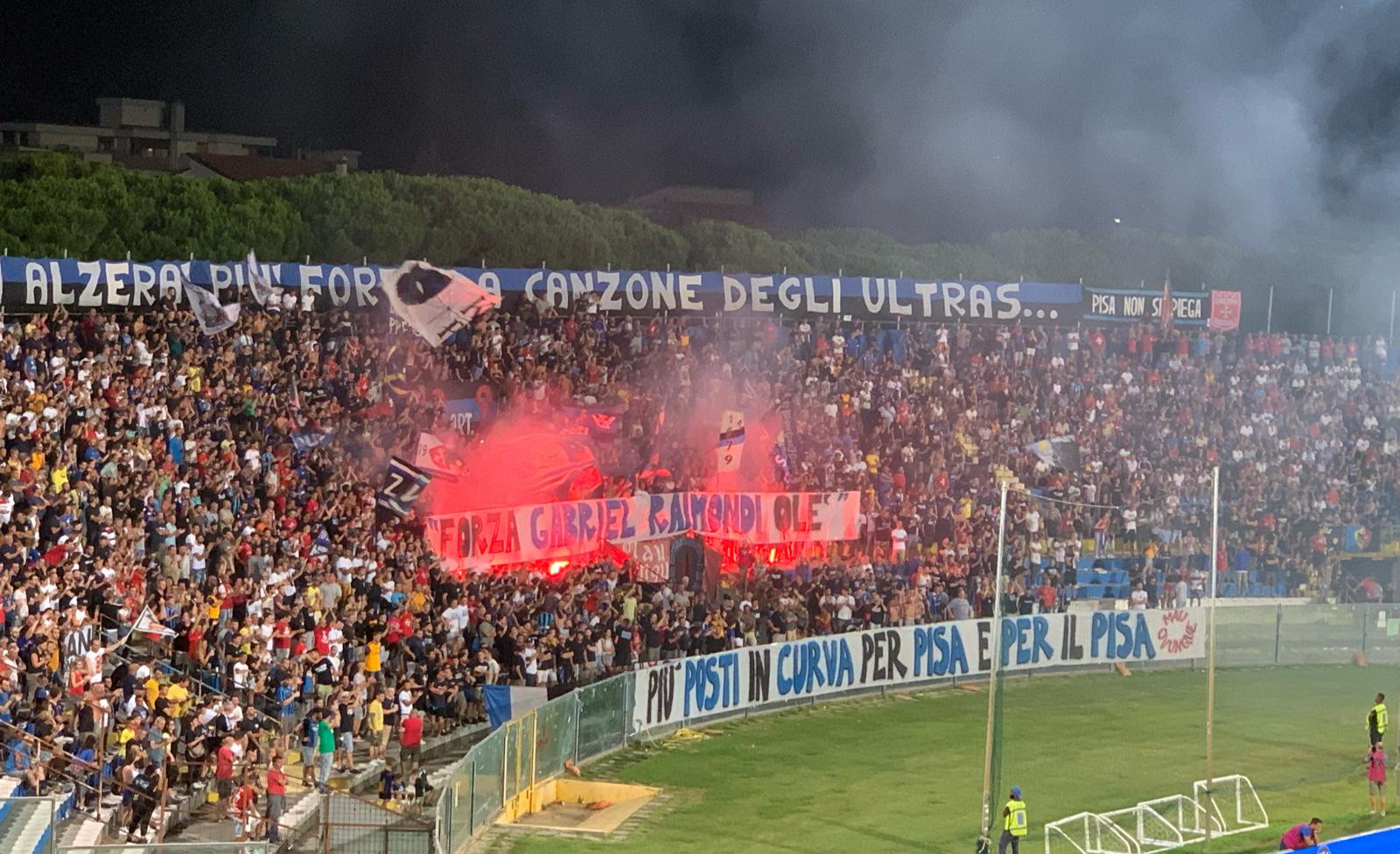 Cantano i pisani, esponendo anche uno striscione per un vecchio guerriero dell’Arena, Gabriel Raimondi, oggi consulente tattico di Mihajlovic. “Un’emozione incredibile vedere che così tanta gente ricorda ancora la promozione in B del 2007, è stato straordinario”.