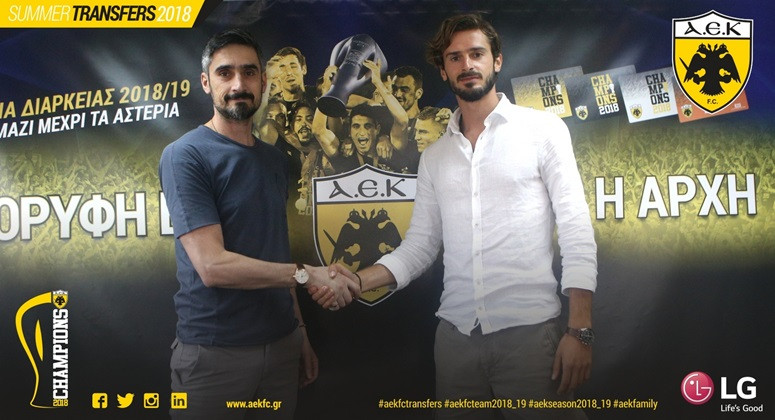 “L’AEK FC annuncia il suo accordo con la società italiana Bologna per il trasferimento di Marios Oikonomou per un contratto di un anno, con il diritto al rinnovo e l’opzione per acquisire il giocatore nel giugno 2019″.