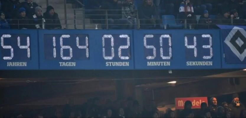 Quuello del Volsparkstadion, infatti, non era un orologio come tutti gli altri. Ma contava gli anni, i mesi, i giorni, le ore, i minuti e i secondi esatti di permanenza in Bundesliga della squadra dei "dinosauri". Un tempo scandito per ben 54 anni: dal 1963, anno di fondazione della Bundesliga, fino al 2018. Già, perché proprio nel maggio dello scorso anno l'Amburgo per la prima volta nella sua storia è retrocesso in Zweite Liga, seconda serie del campionato tedesco. Scatenando l'ira dei suoi tifosi, che non avevano alcuna intenzione di accettare il triste epilogo.