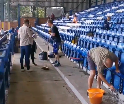 In attesa del termine ultimo per l'iscrizione al campionato, i tifosi del Bury nella giornata odierna si erano smobilitati per aiutare il club (in difficoltà economiche) pulendo seggiolino per seggiolino del Gigg Lane, lo stadio di casa.
