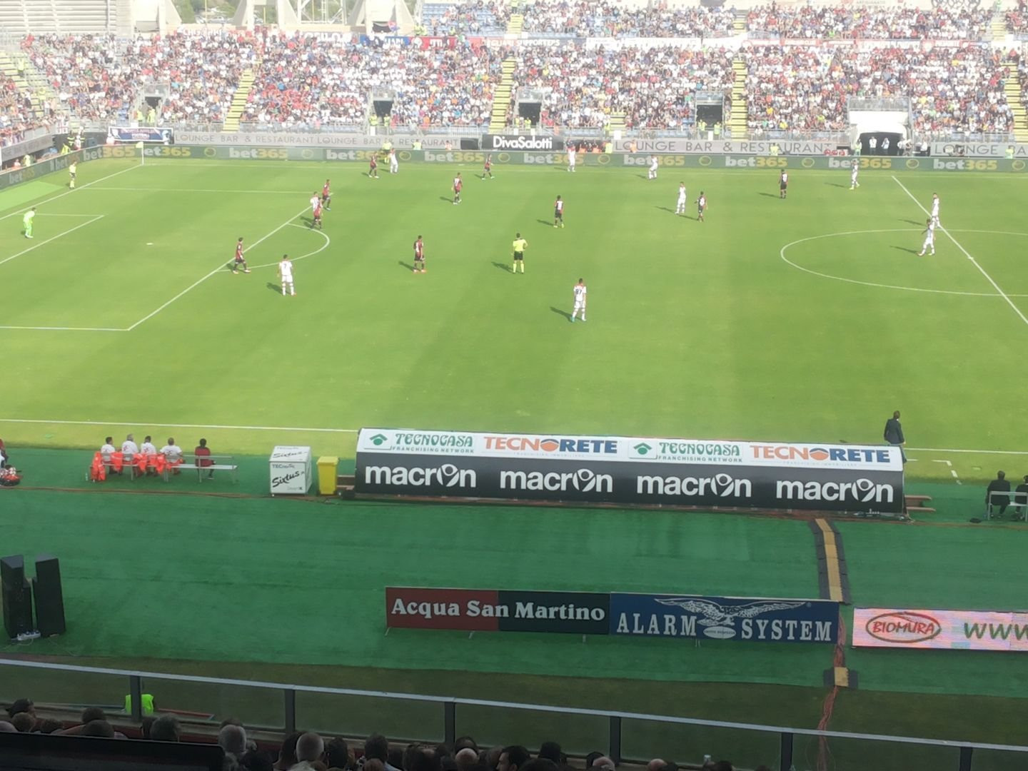 La prima mezzora rispecchia lo stato d’animo delle squadre. Nessuna occasione, taccuini vuoti e l’ennesimo infortunio: ad uscire con la testa fasciata è Clayton. Chi ha coraggio è invece il pubblico del Sant’Elia, Padoin e… il numero otto. E’ Davide Di Gennaro a prendere il comando del gioco e a cercare la porta con insistenza. Puntuale al minuto trentotto è DJ a bucare Cordaz: era già scritto. Esultanza da statua per il regista milanese, come David Platt, Mark Bresciano e Balotelli.