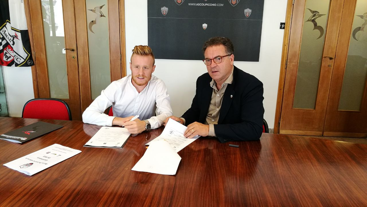 Una storia che comincia, un presente che si tinge di bianconero per Gianmarco De Feo diventato ieri ufficialmente un giocatore dell’Ascoli. Accordo fino al 2020 per il classe ’94 assistito da Luigi Lauro che ha firmato il contratto con la società marchigiana alla presenza dell’amministratore unico dell’Ascoli Andrea Cardinaletti. Ecco la foto della firma:
