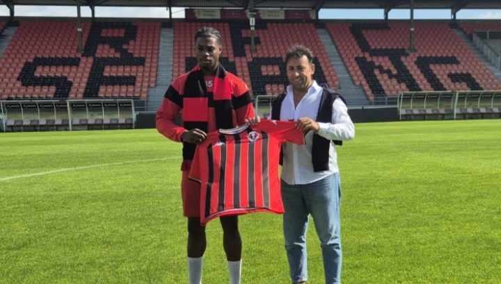 16:36 -La foto della presentazione ufficiale di Akpa-Chukwu (ex Bari) al Seraing, club di serie B Belga. Insieme all’attaccante classe 2005, l’agente Daniele Domenico.