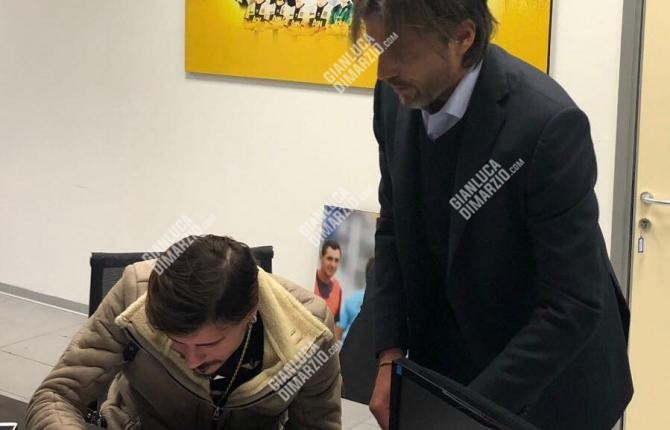 Eccolo in foto al momento della firma insieme al suo agente Claudio Parlato.