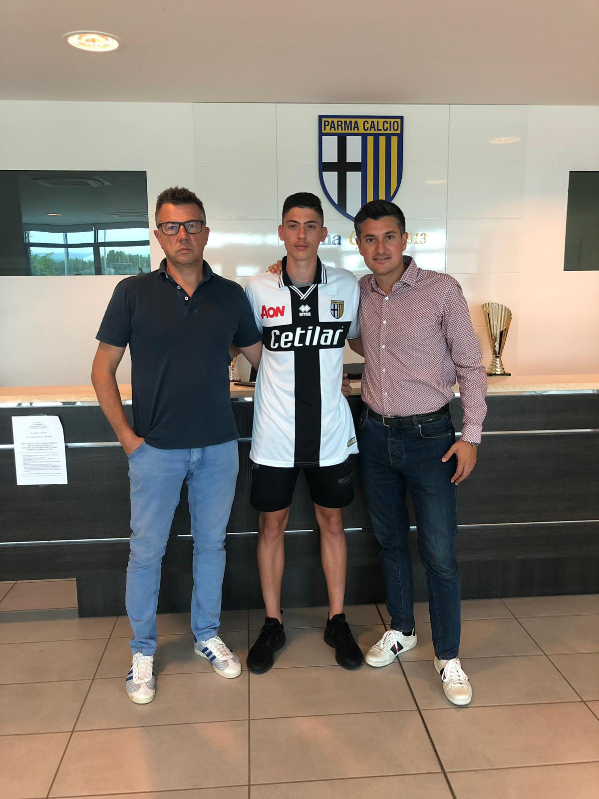 Acquisto in prospettiva, per il Parma, che ha acquistato dal Villarreal Reinaldo Radu, esterno destro di difesa classe 2002 e cugino di Andrei Radu, portiere del Genoa. Il giocatore ha firmato un contratto di tre anni con il club emiliano. Nelle immagini è con l'agente Crescenzo Cecere e il responsabile del settore giovanile del Parma Luca Piazzi.