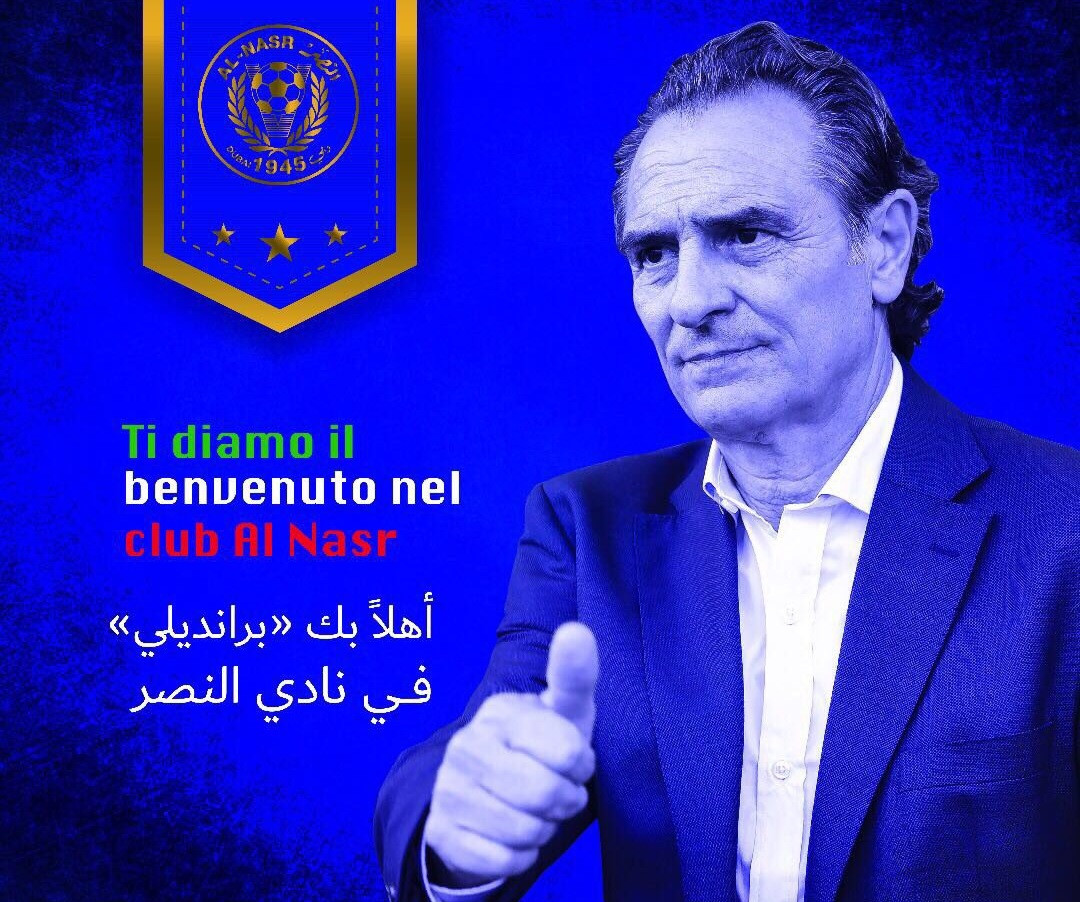 Terminata l’avventura al Valencia, per Cesare Prandelli si aprono le porte degli Emirati. L’Al Nasr, il club che milita nella UAE Arabian Gulf League ha ufficializzato l’ingaggio del tecnico italiano. Un tweet con tanto di benvenuto scritto in italiano per Prandelli, che verrà presentato ufficialmente lunedì alle 10.30 (ora locale). Sostituisce Dan Petrescu.