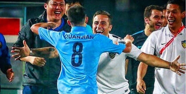 Pellè, autore del primo gol nella vittoria del suo Shandong, non è l’unico italiano a sorridere nella domenica cinese. Nella serie B, infatti, c’è una solo squadra al comando, e sulla panchina del Tianjin c’è Fabio Cannavaro.