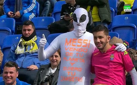 Carnevale in Gran Canaria e per poco questo Las Palmas non si traveste da superequipo e fa la festa al Barcellona. Per poco, appunto. Alla fin fine è stato solo uno scherzo quasi riuscito. Perché Suarez – pichichi di Liga al 41esimo gol stagionale – Neymar e Messi la maschera non ce l’hanno mai avuta, loro sono mostruosi e basta. Supereroi sempre. Luis Enrique soffre in panchina, più del solito (un po’ come in tutte le ultime trasferte della squadra blaugrana) ma porta a casa i tre punti: Las Palmas-Barcellona 1-2, dopo il momentaneo e iniziale vantaggio di William José. Uno splendido Araujo stava per combinare un bello scherzetto, proprio sul finale. MSN che ha segnato 58 dei 67 gol che ha segnato il Barcellona in campionato, semplicemente brutale. Altro? Ah già, balugrana che non perdono da 32 partite consecutive, la seconda miglior striscia in tutta la storia del calcio spagnolo. Barcellona con una partita in più certo, ma lasciare Atletico e Madrid a nove e dieci punti di distanza ora, a questo punto della stagione, fa davvero impressione, ugualmente. Intanto sugli spalti… ecco un extraterrestre, con tanto di messaggio dedicato alla pulga argentina: “Messi vengo dal tuo stesso pianeta e vorrei la tua maglietta”.