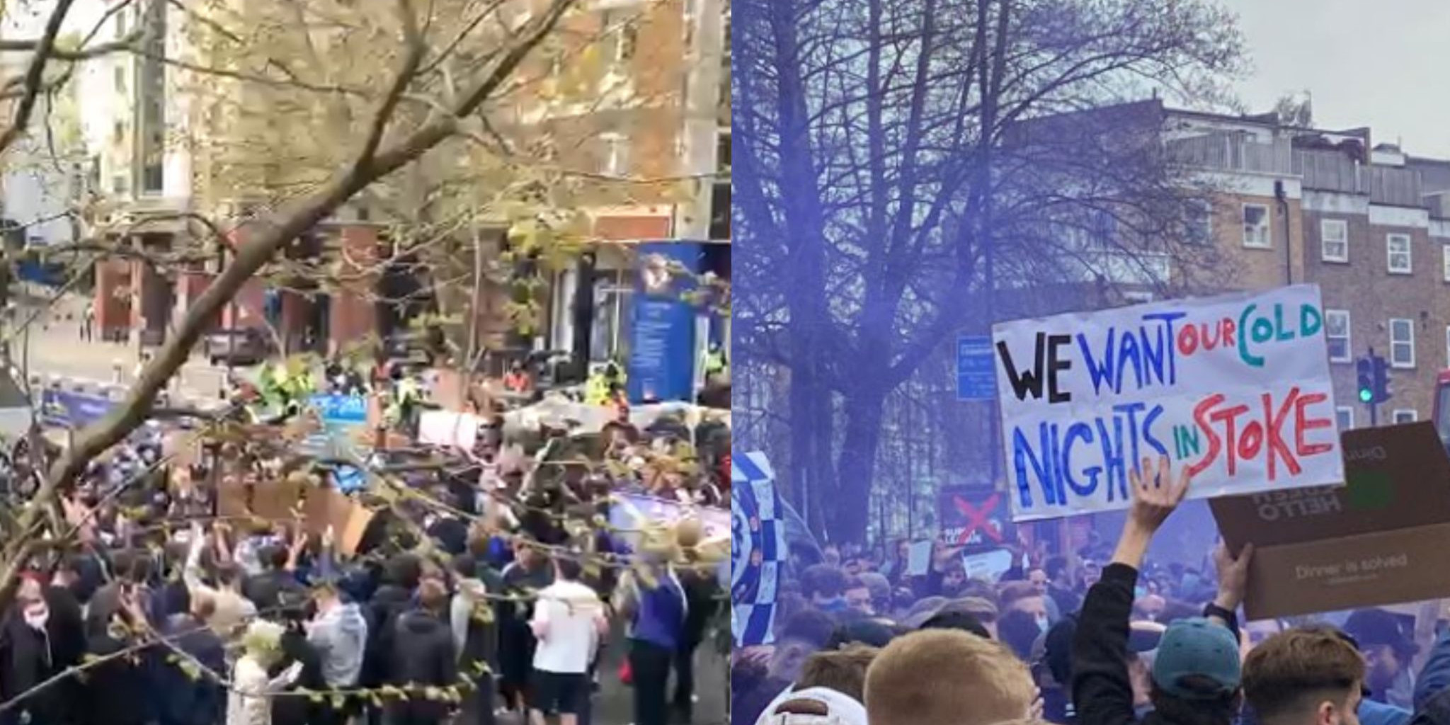 I tifosi del Chelsea si sono ritrovati davanti allo stadio di casa, lo Stamford Bridge, per contestare apertamente l’eventuale partecipazione della loro squadra alla Superlega.