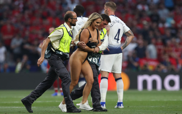 "Nel futuro ognuno sarà famoso per 15 minuti". Ma bastano anche 15 secondi, nell'era dei social. Una corsa seminuda in mezzo al campo del Wanda Metropolitano, tra le facce incredule dei giocatori di Tottenham e Liverpool: la più inattesa protagonista della finale di Champions League è stata senza dubbio Kinsey Wolanski, bionda modella di 23 anni che ha scelto così il suo momento di celebrità.