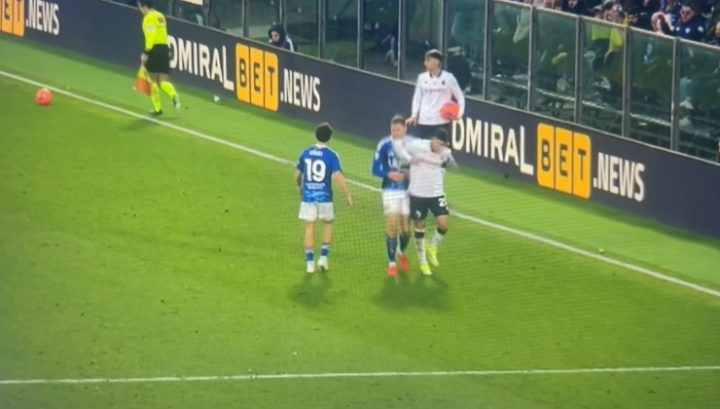 Ma non è finita qui. Passano 5′ e la partita sembra subire un altro stravolgimento. Contatto tra Douvikas e Vitik, Abisso sceglie di assegnare il calcio di rigore. Dopo pochi secondi cambia tutto, una volta ancora. L’arbitro è richiamato al VAR: la trattenuta del centrale del Bologna è troppo lieve e non sufficiente per essere punibile. Niente calcio di rigore e risultato che resta sullo 0-0.