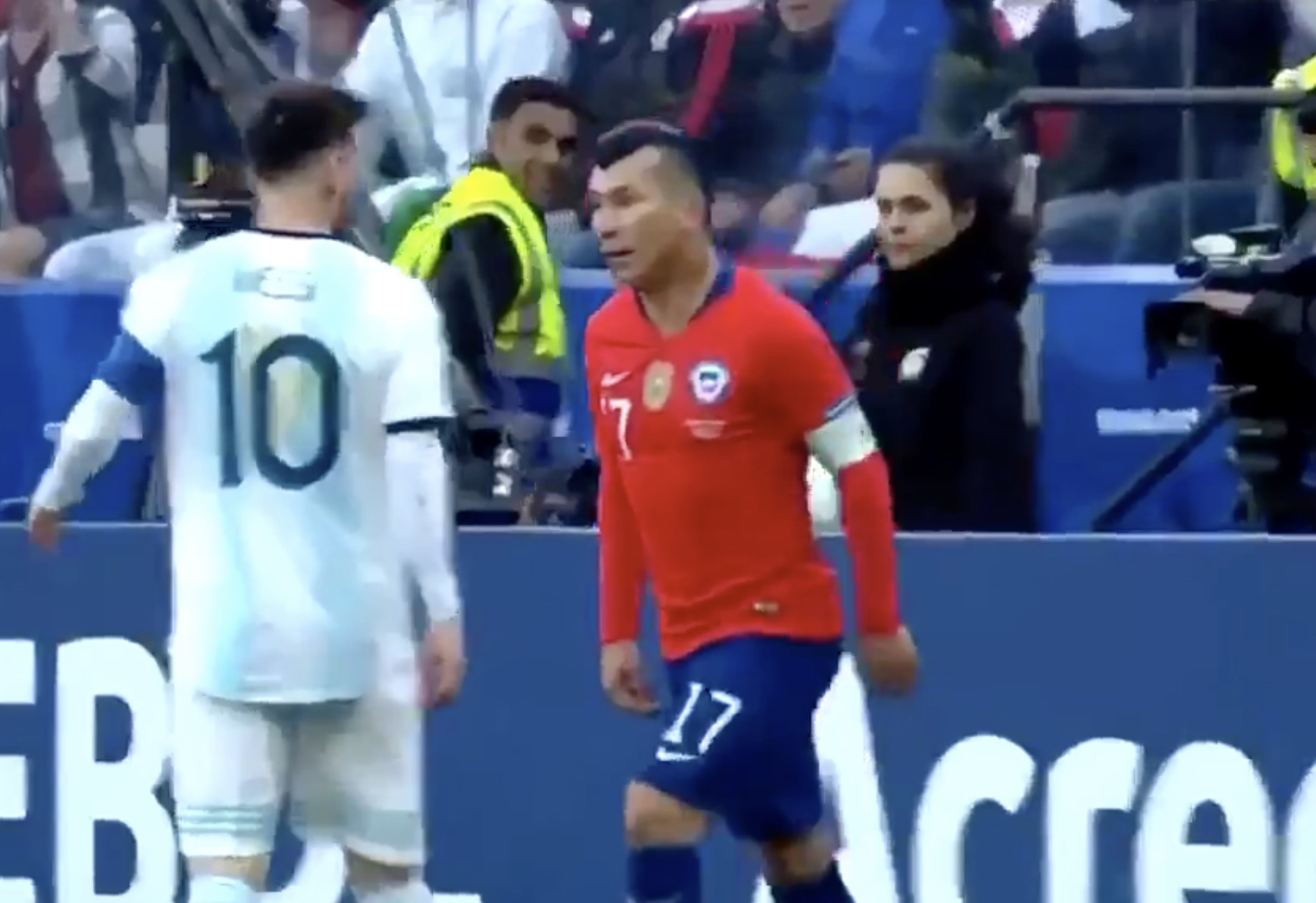 L'Argentina conquista il terzo posto della Copa America. Ma la finale per il podio contro il Cile vive un momento thrilling al 37' del primo tempo, quando l'albiceleste era già in vantaggio per 2-0 sugli avversari (in gol Aguero e lo juventino Dybala). L'episodio: Messi, in progressione, prova a recuperare un pallone che si stava portando sul fondo. Gli fa muro Medel, che una volta uscita la palla si gira irritato verso la pulce andandogli faccia a faccia, con il numero 10 argentino che cercava di non reagire alle provocazioni. Di colpo, però, l'arbitro della gara, il paraguaiano Mario Diaz de Vivar, ha deciso di estrarre subito il cartellino rosso per entrambi, lasciando incredulo l'attaccante.