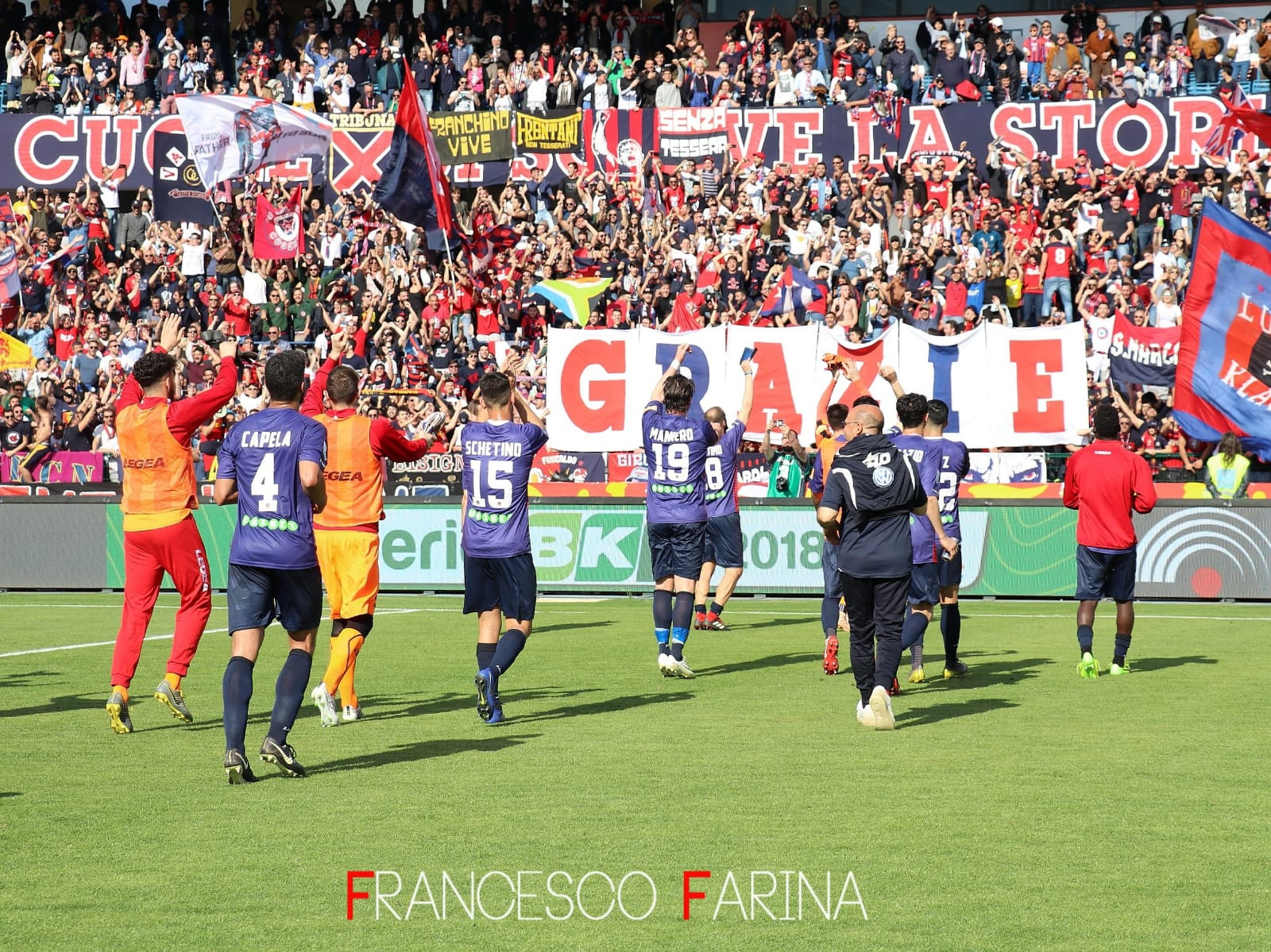 Oggi, 1 maggio 2019, quella festa ha aggiunto un altro capitolo alla storia. I protagonisti, sugli spalti così come in campo, sono quasi sempre gli stessi. La firma di Gennaro Tutino – uno dei grandi eroi della promozione in Serie B – non è altro che l’epilogo scontato di un film dal finale dolce per i colori rossoblù: una rovesciata così bella da far stropicciare gli occhi al pubblico del San Vito-Marulla. Prodezza pazzesca (QUI) e dagli spalti la stessa colonna sonora che i tifosi napoletani dedicavano a Maradona.
