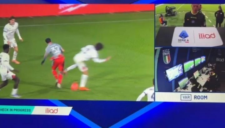 Lavoro per il VAR, che richiama il direttore di gara all’OFR e dopo la revisione al monitor la decisione cambia. Niente rosso per Luperto, come annunciato dallo stesso Bonacina: “Il difensore numero 6 del Cagliari non commette alcun fallo”.