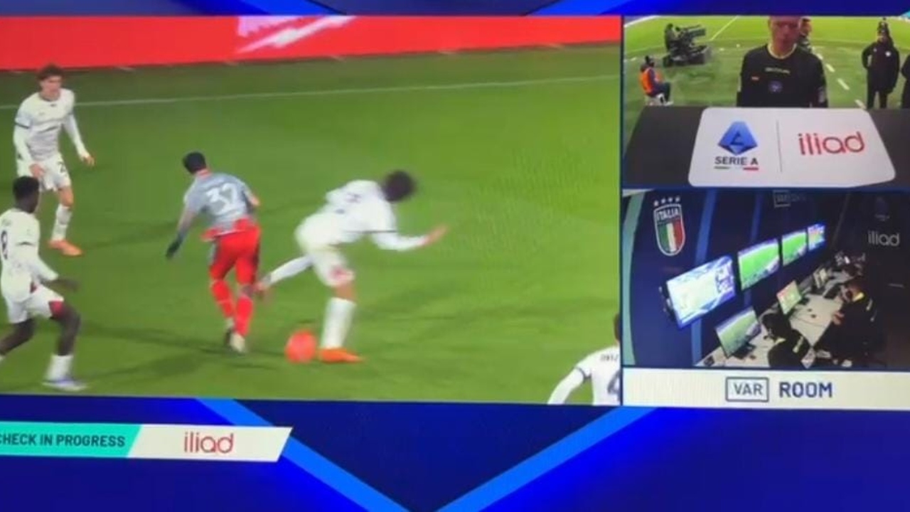 Lavoro per il VAR, che richiama il direttore di gara all’OFR e dopo la revisione al monitor la decisione cambia. Niente rosso per Luperto, come annunciato dallo stesso Bonacina: “Il difensore numero 6 del Cagliari non commette alcun fallo”.