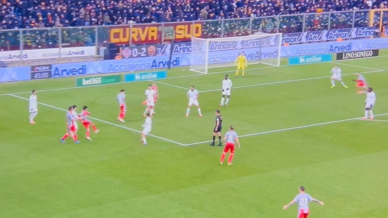 Dopo il gol revocato a Pellegrini per fuorigioco, Ayroldi ha concesso un calcio di rigore ai padroni di casa per tocco di mano di Mancini in area di rigore.