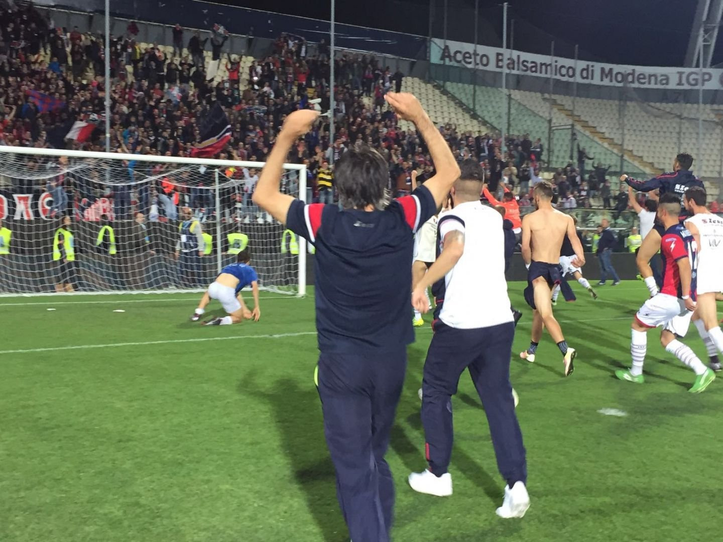 Dopo lo champagne, la gioia, e le parole: “Vedere tutti che piangono e gioiscono mi commuove, è il momento più importante della mia vita sportiva. Ora penso alla gioia, alla felicità, non al futuro, che condivido con la dirigenza, che da 25 anni guida una piccola grande società. Io so di aver fatto un grande campionato, ma loro di più. I ragazzi sono stati grandi, hanno sempre messo il cuore in ogni partita e in ogni allenamento. È una squadra dai grandi valori umani, grazie a Ursino perché ha preso giovani fantastici.”