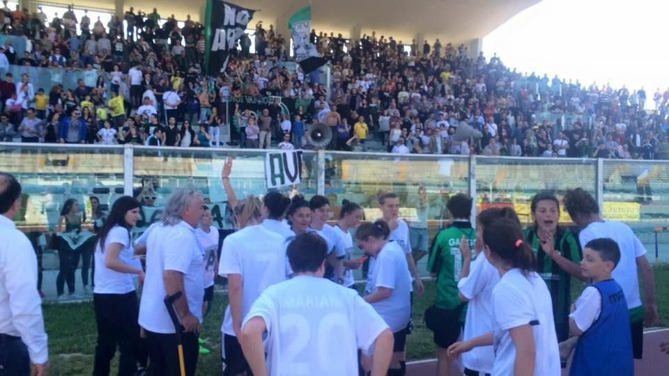 Chieti Calcio Femminile. Serie A. Un sogno. Un obiettivo. Prefissato e raggiunto. Con il cuore neroverde. Anzi, due cuori neroverdi. I nostri. Insieme a quelli di calciatrici meravigliose. Grandiose. Uniche. Alcune di loro storiche. Pronte a correre e a lottare per una città che di tornare a vincere aveva tanto bisogno. E oggi, finalmente, può dire di averlo fatto. Grazie a noi ragazze. Ad una società sana, seria, pronta a migliorarsi giorno dopo giorno. Ad un tecnico competente, e tanto forte. Il nostro papà. Lello Di Camillo. Scrivere in questi momenti non è semplice, credeteci, è davvero complicato. C’è talmente tanta gioia, che la testa incredibilmente si svuota, con lo stomaco che invece si riempie. Di emozioni. Uniche. Da brividi. Con quel boato all’Angelini, al minuto 52, che Giulia ricorderà per tutta la vita. Tutta la vita. E insieme a lei, la Teate intera. Chieti, benvenuta dove meriti. In Serie A. Conquistata con 21 vittorie su 22 partite, ed un solo pareggio. Ieri, hai preso quello che ti spettava, contro una buona Roma, battuta 1-0. Davanti a più di 2000 persone. Perché anche le donne, sanno emozionare.