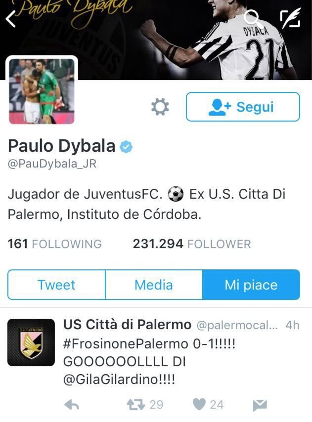 E’ Paulo Dybala, l’ultimo gioiello scoperto e rivenduto dal Palermo, che ha ancora nel cuore la sua ex squadra. Con i rosanero, infatti, l’argentino ha collezionato 93 presenze e segnato 21 reti, tra Serie A, Serie B e Coppa Italia in tre stagioni, prima di essere prelevato dalla Juventus.