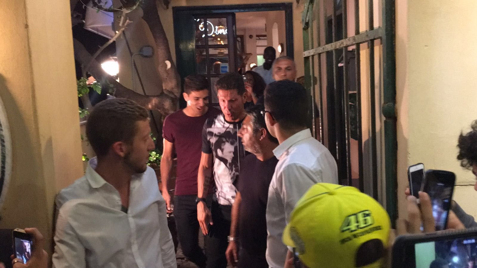 Detto fatto. Il nome sul tavolo? El Cholo, per due. L’arrivo, borgo affollato dai turisti di fine agosto, intorno alle 22. Menù della serata? Pesce e… fútbol, ovviamente. “Non parla d’altro. Dal campo a tavola, pensa sempre al pallone” le parole di ‘Giò’ qualche giorno fa dal Signorini, il Cholismo non solo filosofia in campo ma un vero e proprio stile di vita. Tutto, mentre sotto all’Osteria la presenza di allenatore dei Colchoneros e figlio cominciava a non passare più inosservata. “C’è Simeone a cena? Si, Giovanni ora gioca nel Genoa”. “C’è anche papà Diego, é venuto a trovare il figlio” il tam tam tra i tanti appassionati di pallone testa in su e mare alle spalle, a rubare un attimo di intimità tra padre e figlio. Minuti che passano, folla che aumenta e Boccadasse che si trasforma in un piccolo ‘Vicente Calderón’ tra cori e applausi per il Cholo, travolto dall’ entusiasmo all’uscita dal locale. Selfie, abbracci e anche una richiesta speciale – “Quando vieni alla Lazio?” – prima di salire sul taxi diretto all’NH Marina per la notte.