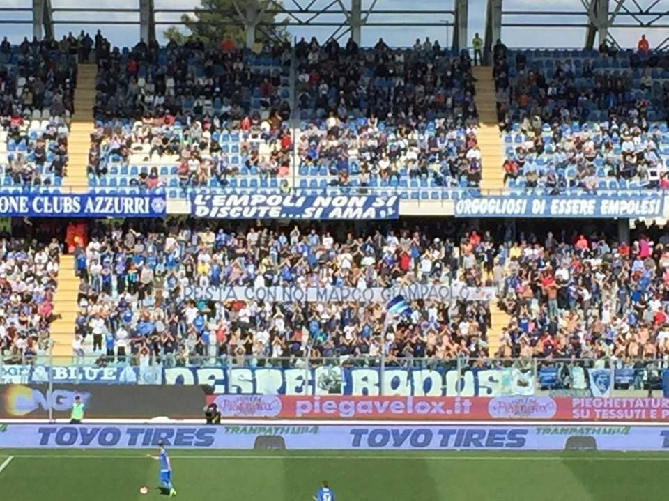 Minuto 70 di Empoli-Bologna: la Maratona si alza in piedi, tira su uno striscione e scalda la voce. “Resta con noi Marco Giampaolo!“: grido forte e chiaro che diventa coro, parole scritte in azzurro su un lungo lenzuolo che rimane esposto per un bel po’. Lui mani in tasca, quasi impassibile per i primi secondi. Poi alza il braccio e ricambia l’affetto con un saluto fra gli applausi di tutto il Castellani. E forse questa, per l’allenatore dell’Empoli, è la vittoria più bella della stagione: lui, arrivato tra le critiche, lo scetticismo ed il fantasma di Sarri, è stato in grado di regalare alla città la dodicesima stagione in Serie A e migliorare quanto fatto dall’allenatore del Napoli un anno fa. La classifica, dopo lo 0-0 col Bologna, dice 43 punti, Sarri si era fermato a 42. Continuità ed innovazione, gioventù al potere e bel gioco messo in primo piano. Il futuro l’Empoli lo programmerà dopo l’ultima di campionato, ma intanto il Castellani si è già schierato. E lui, che si è preso la rivincita più grande della sua carriera, sorride in panchina.