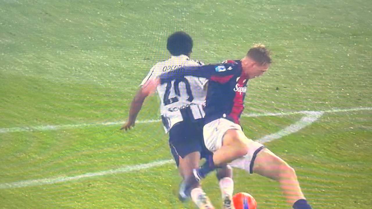 Torbjørn Heggem espulso per fallo su Openda nel secondo tempo di Bologna-Juventus