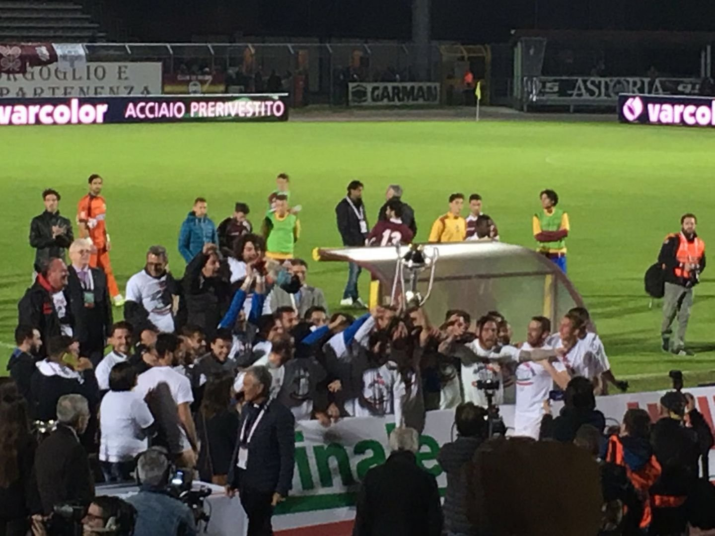 Il sorriso è di quelli belli lunghi. Per capire la gioia basta vedere gli occhi di De Zerbi, del capitano Agnelli e di qualsiasi altro giocatore del Foggia. Che trionfa, sì, in quella Coppa Italia Lega Pro tanto desiderata. Nel doppio confronto, il Cittadella è battuto, l’attacco sorride, la squadra va al settimo cielo. E parte la festa, prima sul campo e poi negli spogliatoi. Una festa tutta da vivere, con la nostra fotogallery: